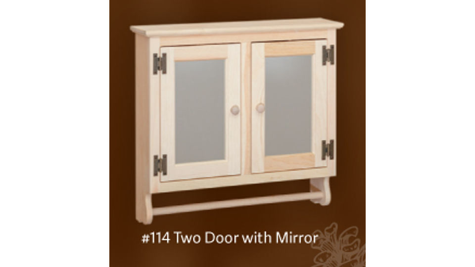114 - Pine 2 Door Wall Cabinet with Mirror