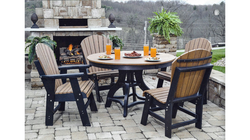 48" Round Poly Patio Table with 2 Adirondack Arm Chairs & 2 Side Chairs