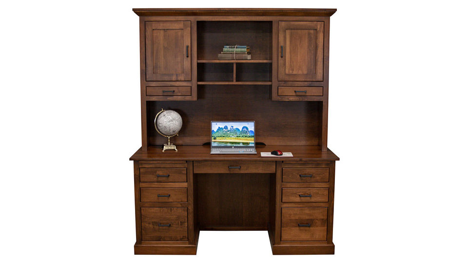 Dutch Mission Double Pedestal Desk with Hutch