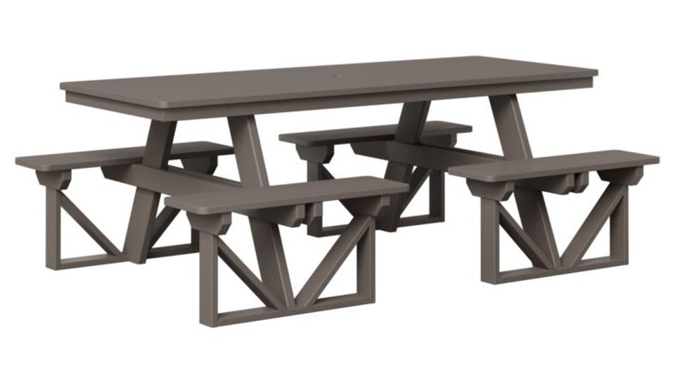View Larger Image Starting at: $2,040.00 Request quote Add to wishlist Walk In Picnic Table & Benches:- 84" W x 62" D x 29" H- Table Top | 33" x 84" Rectangle- Set Seats 8 AdultsALL DUTCH LINE COLORS- Link to Larger Photo (click here) Woods & Stains Financing Delivered With Care